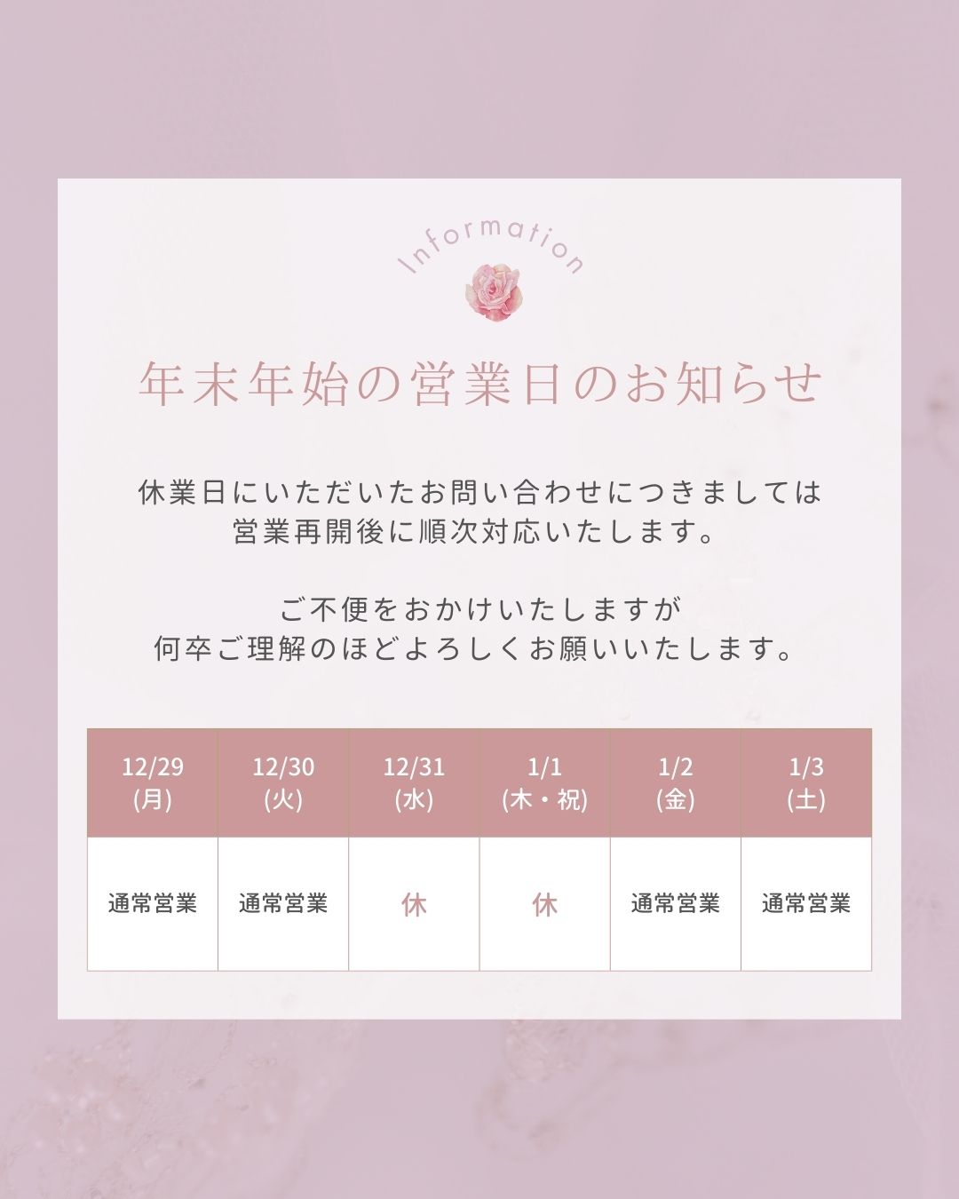 年末年始は12/31(水)・1/1(木・祝)を休業とさせていただきます。